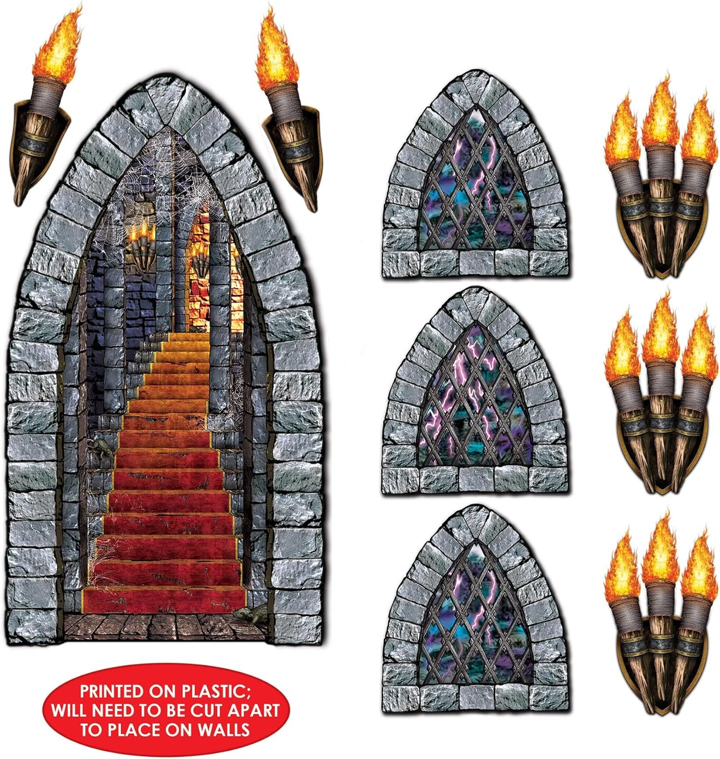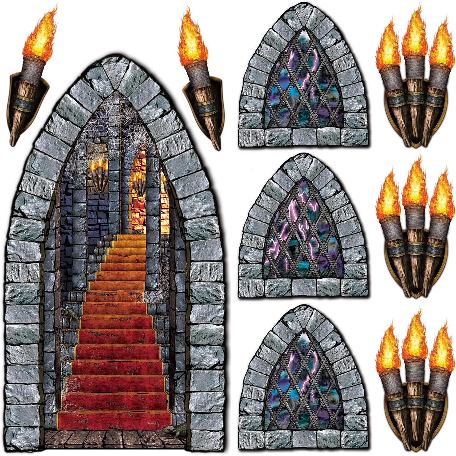 The haunted props Stairway, Window & Torch Props Party Accessory (1 count) (9/Pkg) is designed for anyone creating a truly immersive Halloween scene in 2025. This product instantly transforms any space into a gothic party or horror setting, thanks to its realistic castle decorations and easy-to-install plastic cutouts.