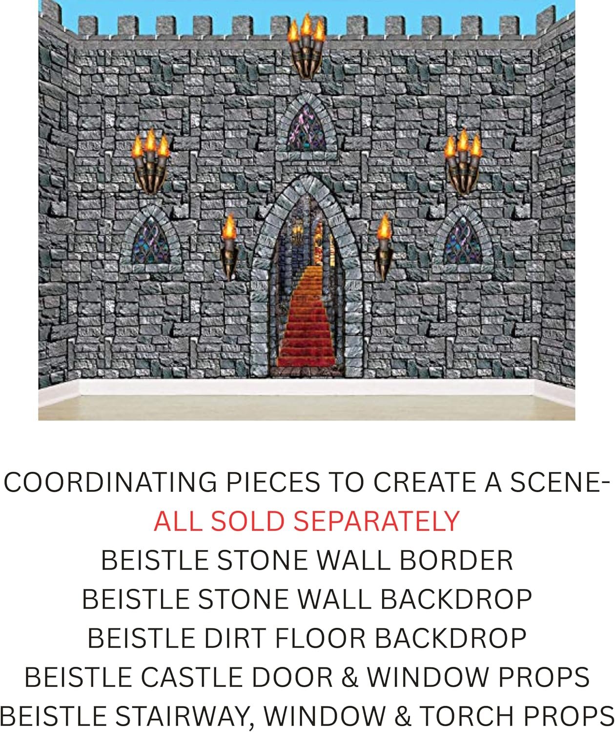 When compared to similarly priced plastic wall decoration kits, the Beistle Stairway, Window & Torch set outshines many for sheer size and realism. Competitor products like the Forum Novelties Dungeon Scene Setter and Amscan’s Haunted Wall Kit offer decent spooky decor, but rarely match the level of medieval detail or compatibility with supplemental backdrops.